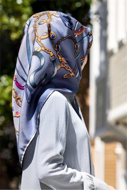 Vissona Tivil İpek Eşarp 17558 – 10 – 0031 İndigo Zincir Desen