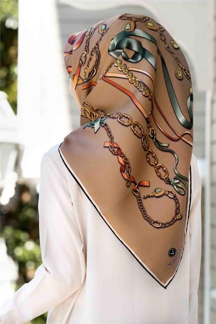 Vissona Tivil İpek Eşarp 17558 – 5 – 0015 – 0013 Bakır Zincir Desen