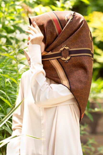Vissona Kahverengi Taba Karma Desen Tivil İpek Eşarp 10653 – 0007 – 0014