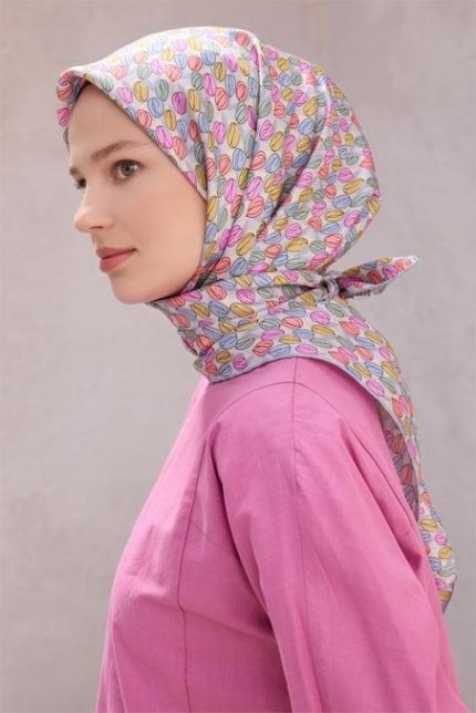 Belli Tivil Saf İpek Eşarp 4203 – 07 Pembe Geometrik Desen