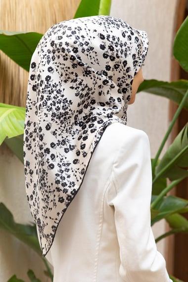 Vissona Tivil İpek Eşarp 60911 – 4 – 0003 – 0001 Beyaz Siyah Çiçek Desen