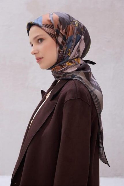 Belli Tivil İpek Eşarp 4045 – 36 Sütlü Kahve Karışık Desen