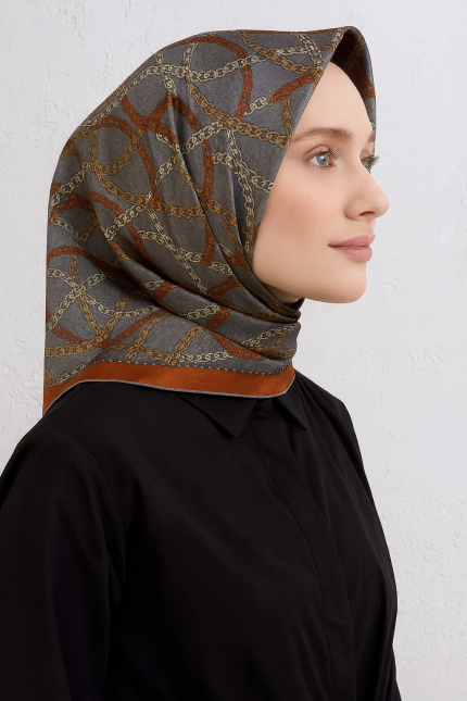 Aker Haki Karma Desen Tivil İpek Eşarp 31953