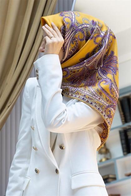 Vissona Tivil İpek Eşarp 60777 – 7 – 0011 Sarı Etnik Desen