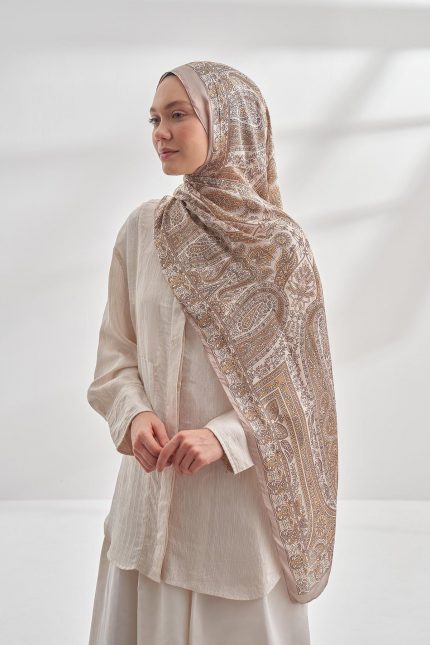Armine Sura İpek Eşarp 9342 – 37 Sütlü Kahve Karışık Desen