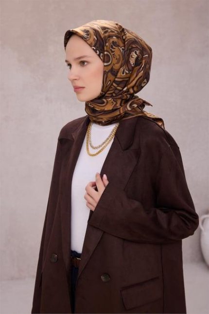BeBelli Tivil Saf İpek Eşarp 4222 - 89 Kahverengi Soyut Desen