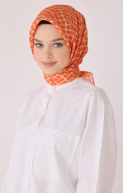 Belli Tivil İpek Eşarp 4062-32 Turuncu Karışık Desen