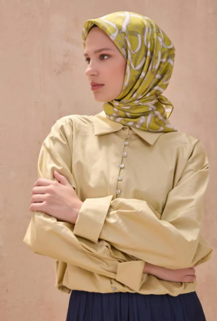 Aker Defolu Hardal Sarı Zincir Desen Sura İpek Eşarp 34027
