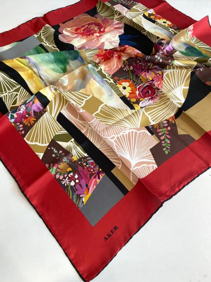 Aker Defolu Tivil İpek Eşarp 39329 Kırmızı Karışık Desen