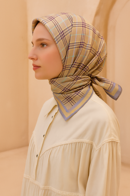 Belli Tivil Saf İpek Eşarp 4218 - 06 Yeşil Ekose Desen