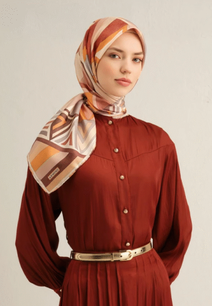 Armine Tivil İpek Eşarp 9326 – 83 Turuncu Karışık Desen