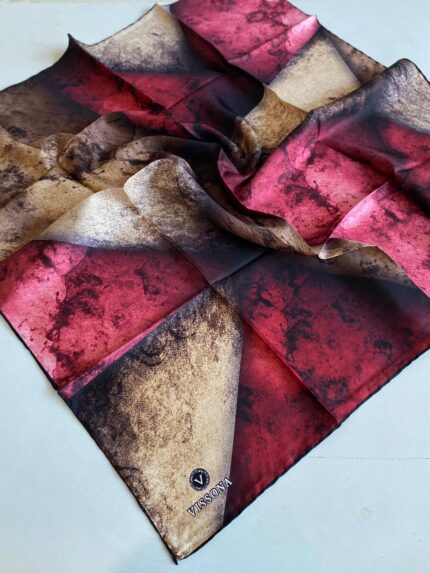 Vissona Tivil İpek Eşarp 17449 – 0018 – 0004 Bordo Hardal Karışık Desen