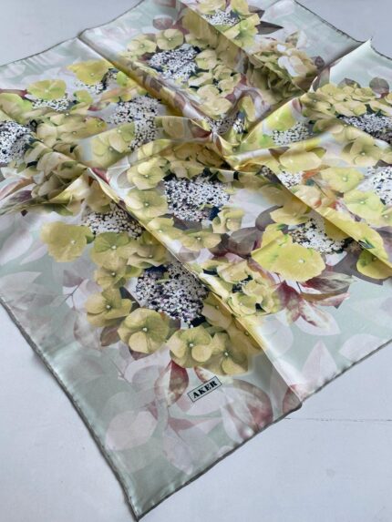 Aker Sura Saf İpek Eşarp 49613 Yeşil Karışık Desen