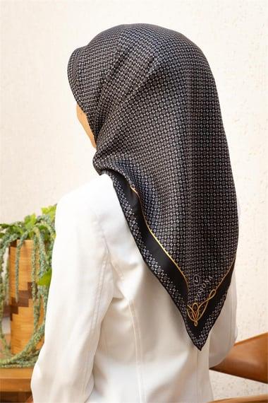 Vissona Tivil İpek Eşarp 60960 – 1 – 0001 – 0001 Siyah Monogrom Desen