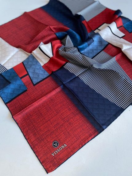 Vissona Tivil İpek Eşarp 50120 – 0017 – 0031 Kırmızı Karışık Desen