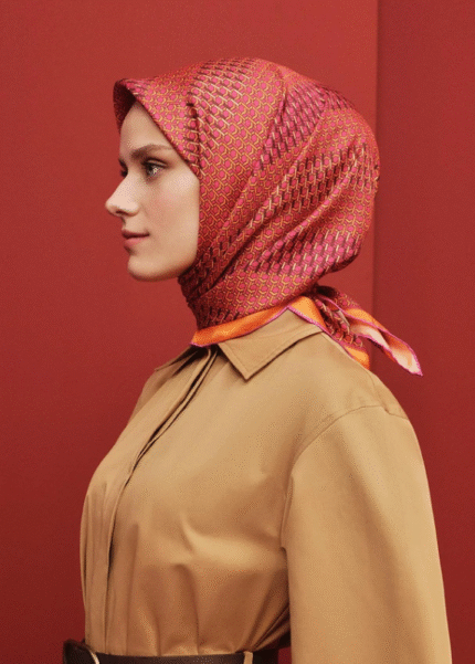 Armine Tivil İpek Eşarp 9319 – 54 Turuncu Karışık Desen