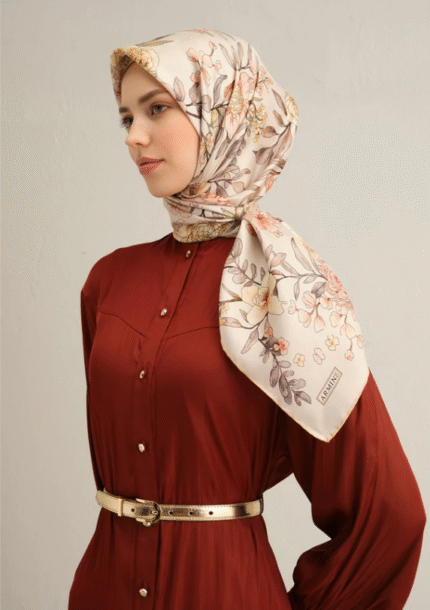 Armine Sura İpek Eşarp 9347 – 02 Krem Karışık Desen