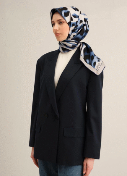 Armine Sura İpek Eşarp 9320 – 33 Lacivert Karışık Desen