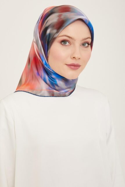 Armine Mavi Mercan Batik Desen Tivil İpek Eşarp 9136 – 83