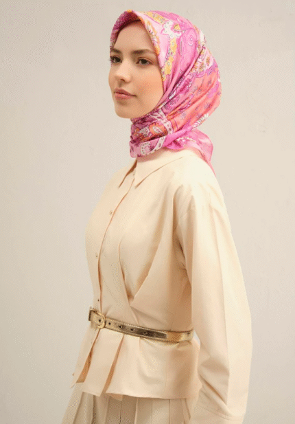 Armine Sura İpek Eşarp 9338 – 54 Pembe Karışık Desen