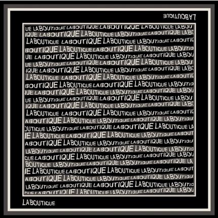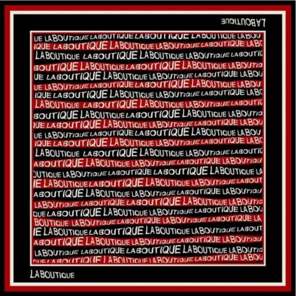 Siyah zemin üzerinde pembe, beyaz şeritler üzerinde 'LABOUTİQUE' yazısı ile bütünlük sağlanmıştır.