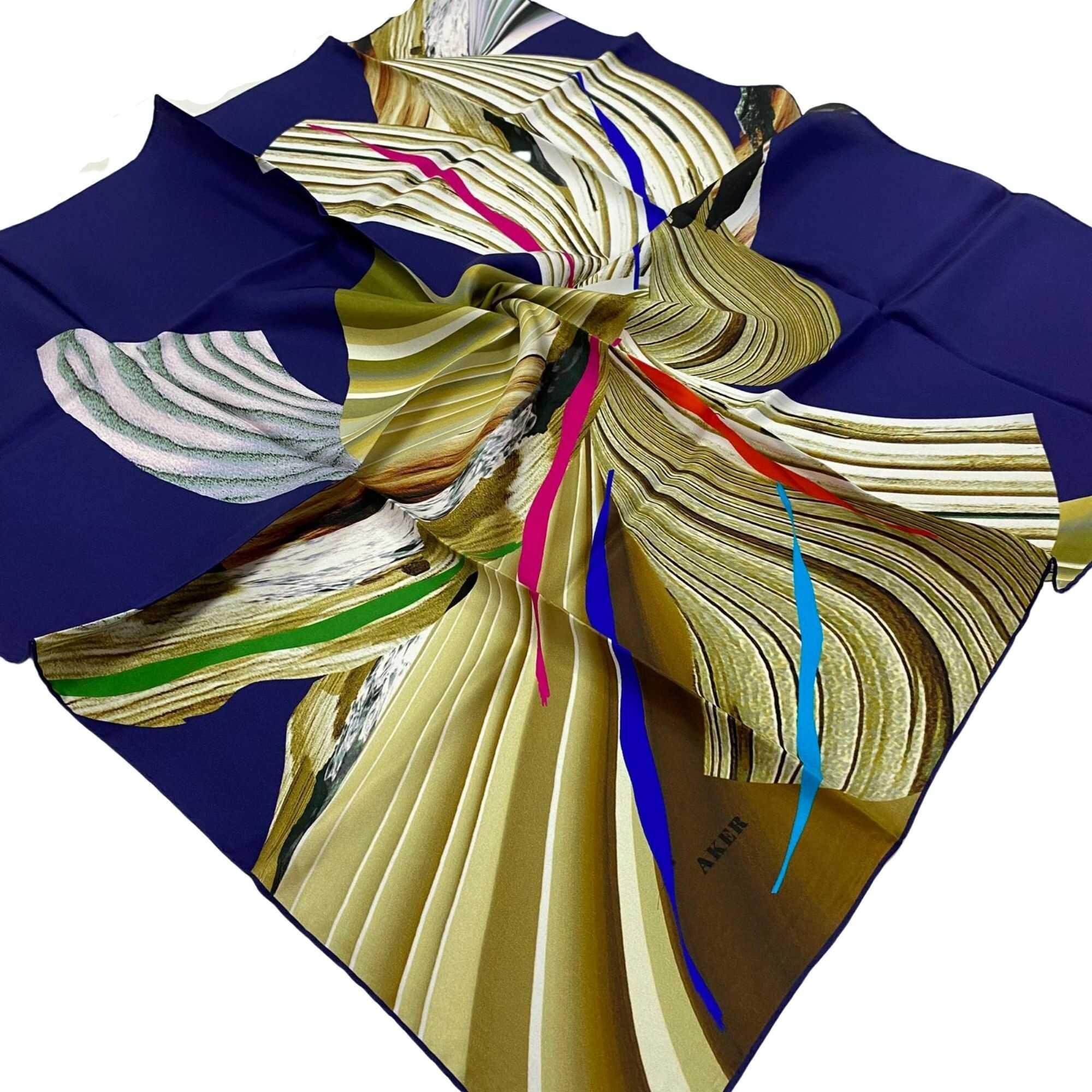Aker Defolu Lacivert – Acı Kahve Karma Desen Tivil İpek Eşarp 4207701 – 25830