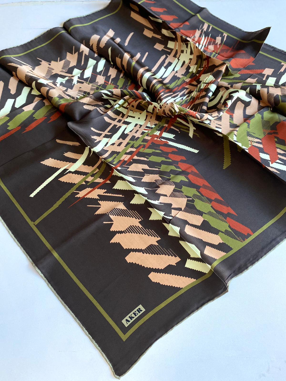 Aker Defolu Haki Yeşil Karma Desen Sura İpek Eşarp 33285