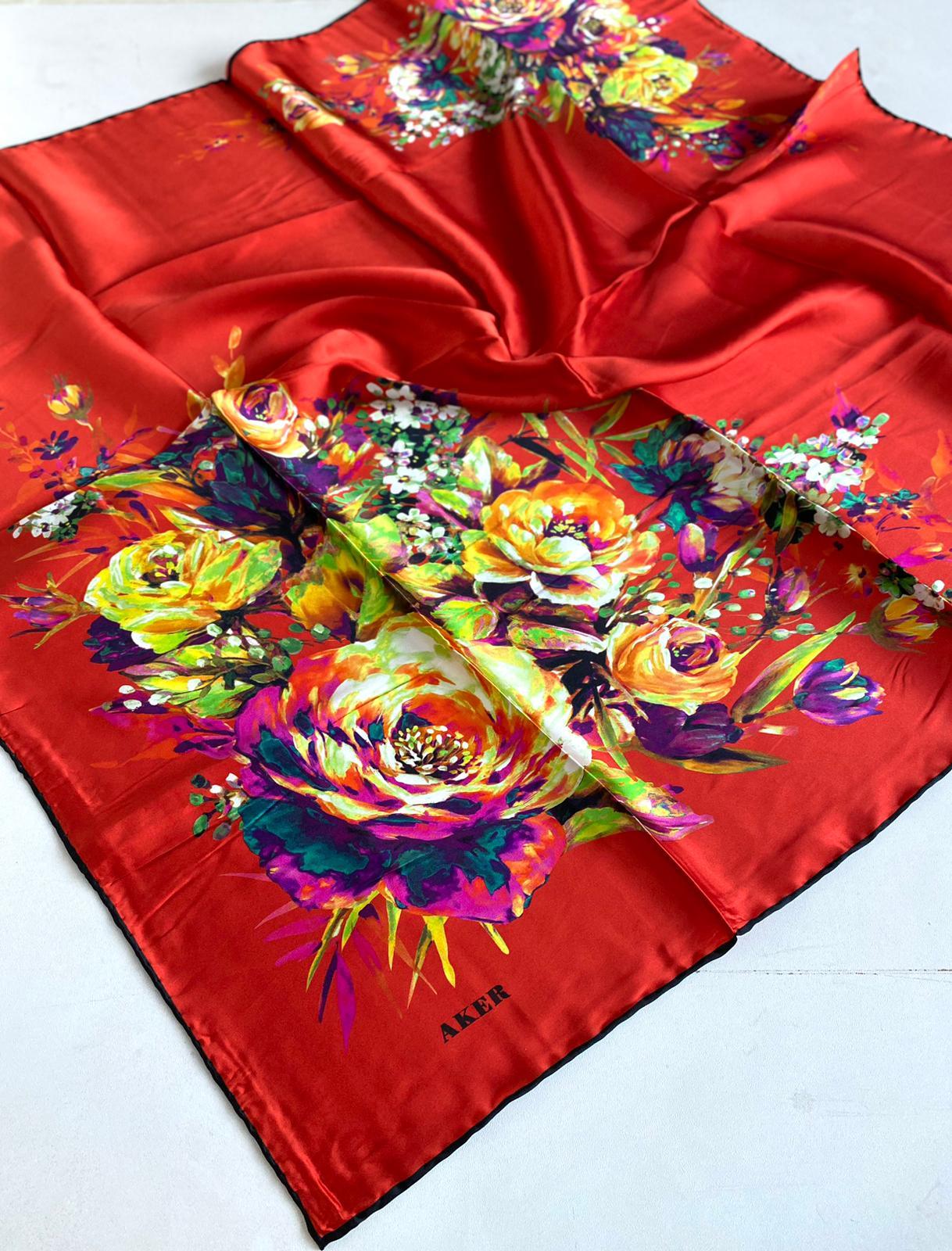 Aker Defolu Sura İpek Eşarp 44119 Kırmızı Karışık Desen