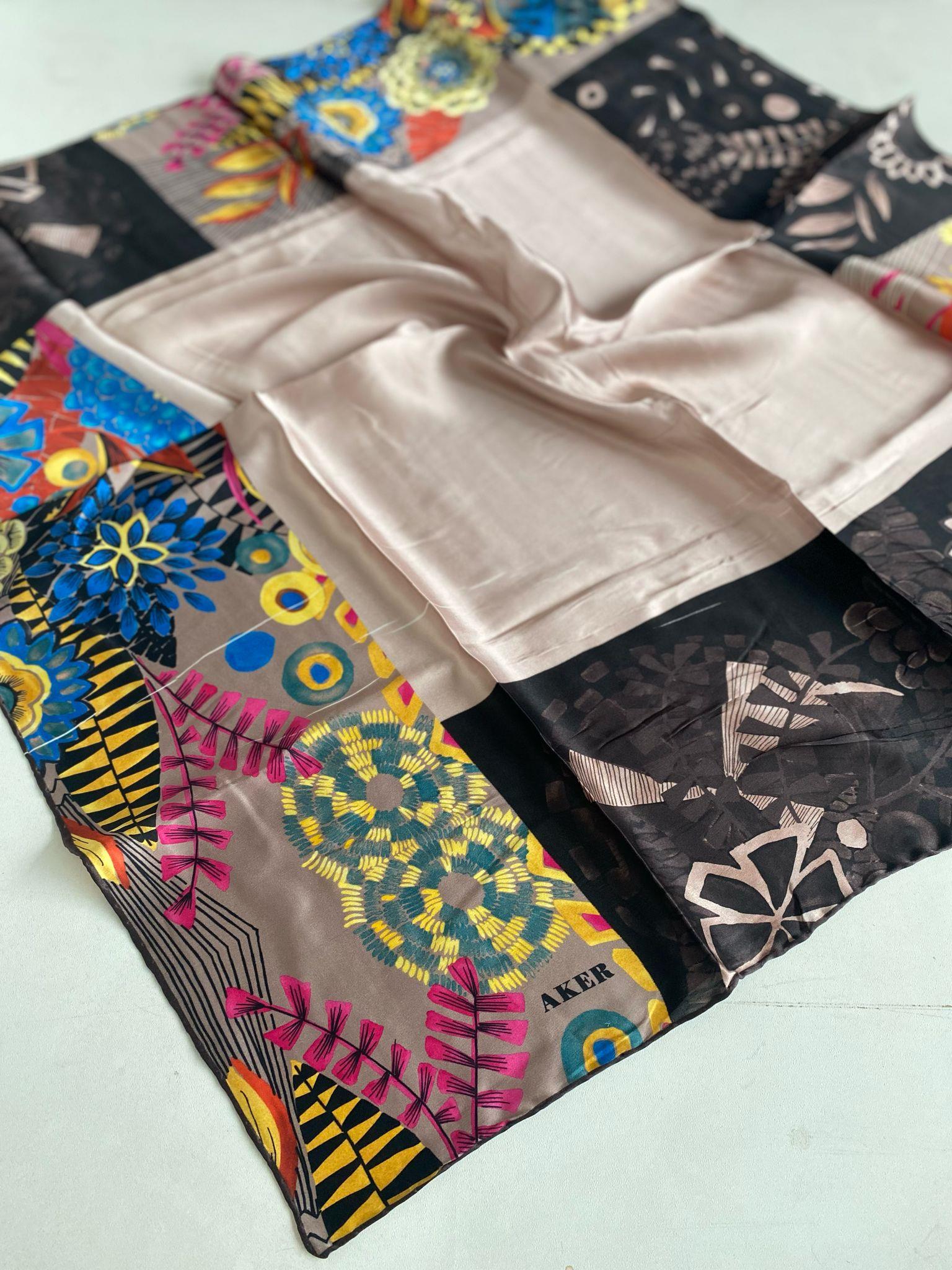 Aker Defolu Bej Karma Desen Sura İpek Eşarp 33521