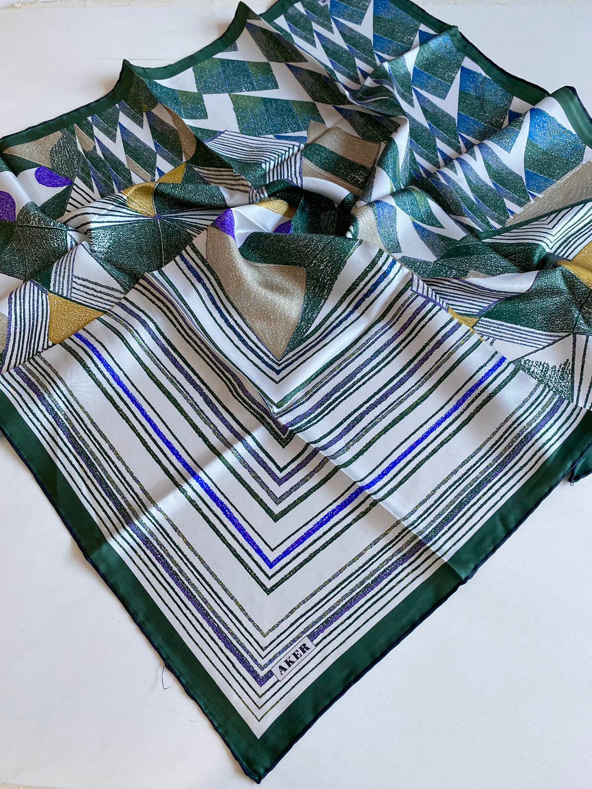 Aker Defolu Haki Yeşil Karma Desen Sura İpek Eşarp 33285