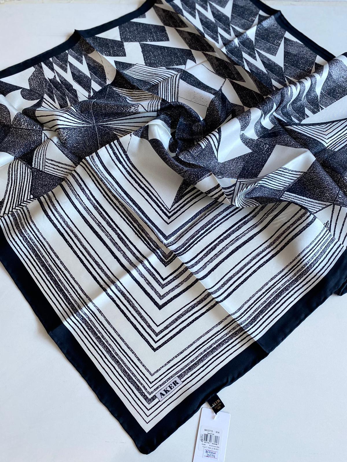 Aker Defolu Tivil İpek Eşarp 39577 Siyah – Beyaz Karışık Desen