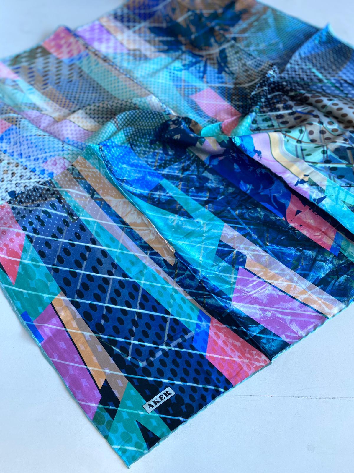 Aker Sura İpek Eşarp 43868 Lacivert Karışık Desen