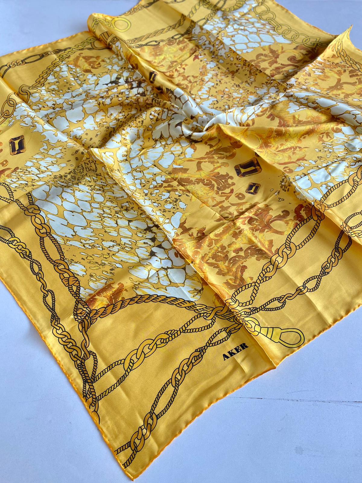 Aker Sura İpek Eşarp 44178 Sarı Karışık Desen