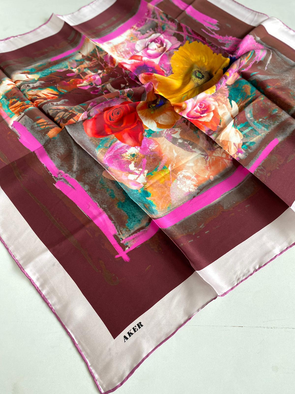 Aker İpek Eşarp, naif dokusunu kaliteli işçilikle birleştirerek özgün tasarımlar sunar.