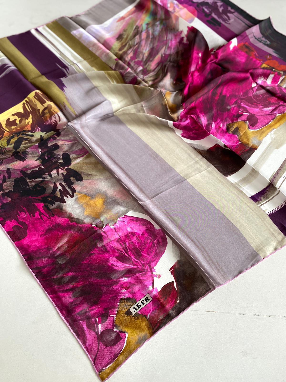 Aker İpek Eşarp, naif dokusunu kaliteli işçilikle birleştirerek özgün tasarımlar sunar.