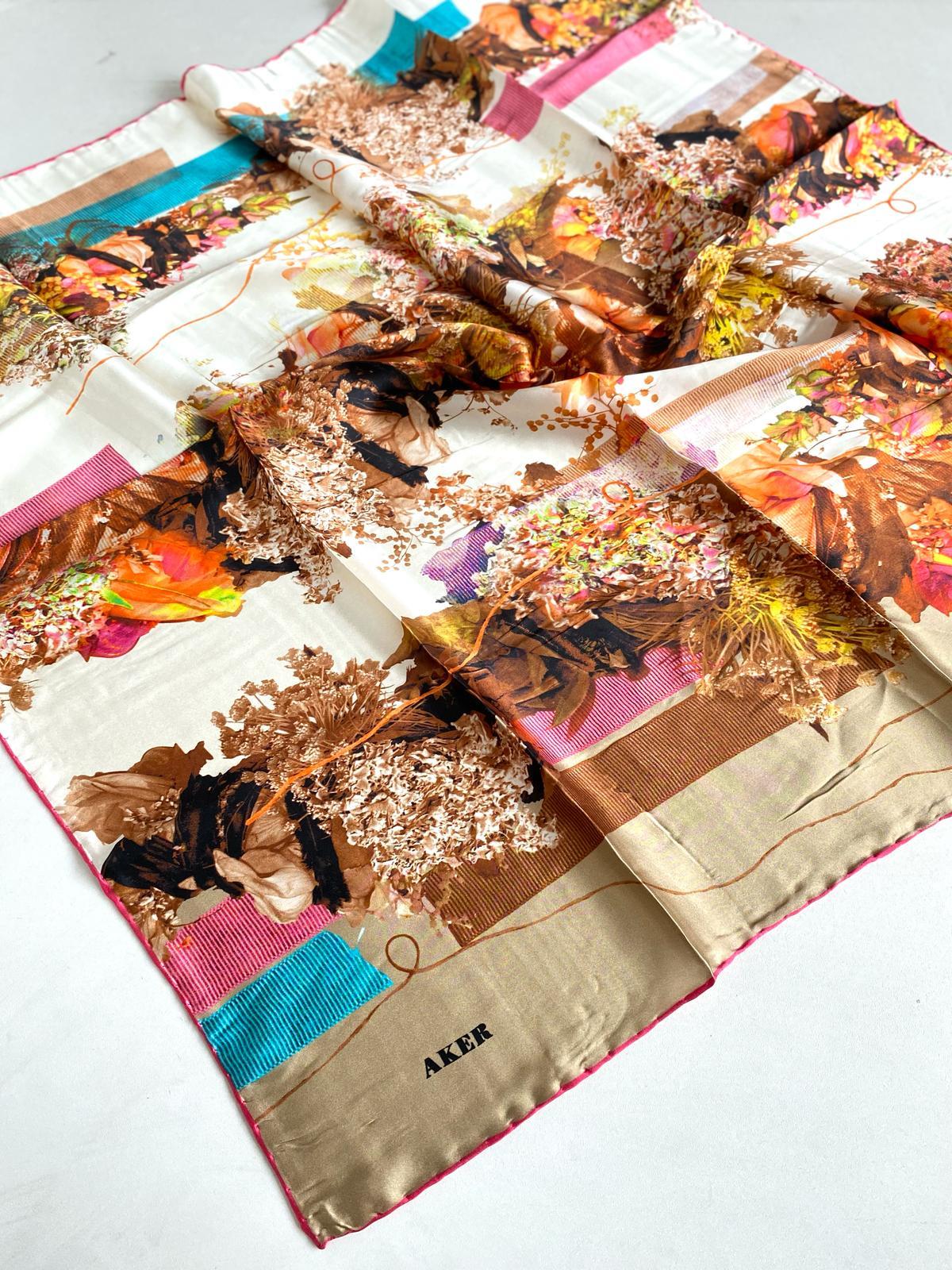Aker İpek Eşarp, naif dokusunu kaliteli işçilikle birleştirerek özgün tasarımlar sunar.