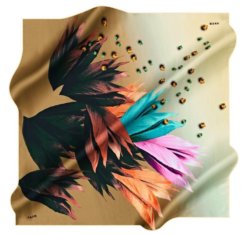 Aker İpek Eşarp, naif dokusunu kaliteli işçilikle birleştirerek özgün tasarımlar sunar.