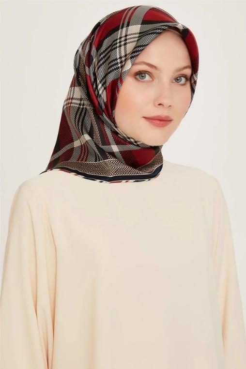 Lawilia Siyah Kırmızı Çizgili Geometrik Desen Tivil İpek Eşarp 29011 – 26