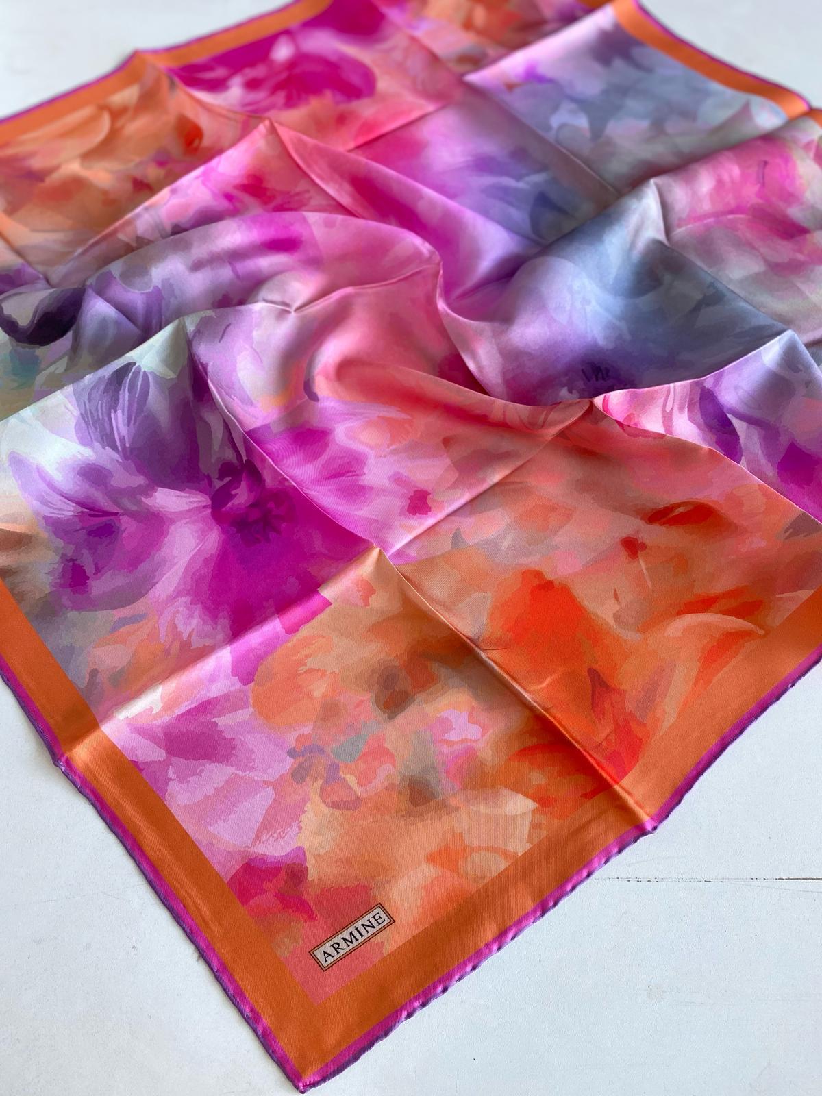 Armine Sura İpek Eşarp 9310 – 84 Turuncu Karışık Desen