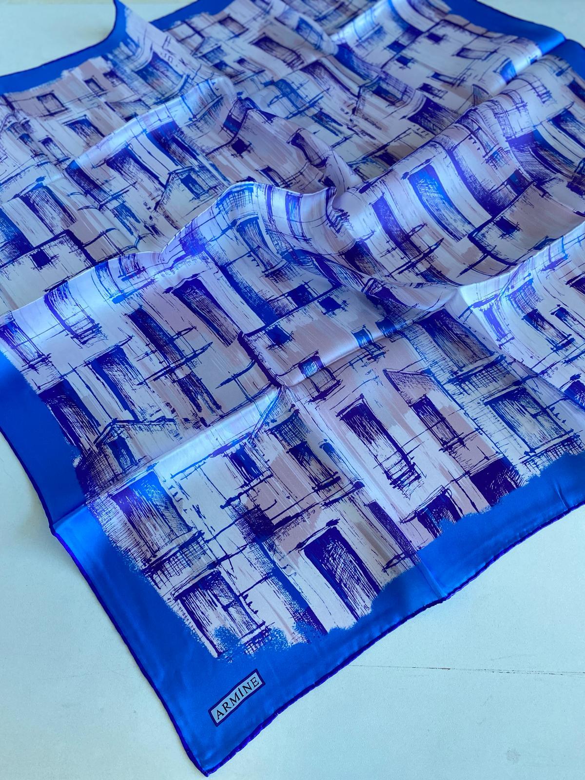 Lawilia Lacivert Mavi Çizgili Geometrik Desen Tivil İpek Eşarp 29011 – 27