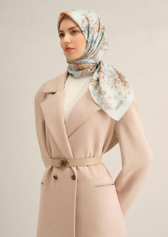 Armine Tivil İpek Eşarp 9347-80 Buz Mavi Karışık Desen