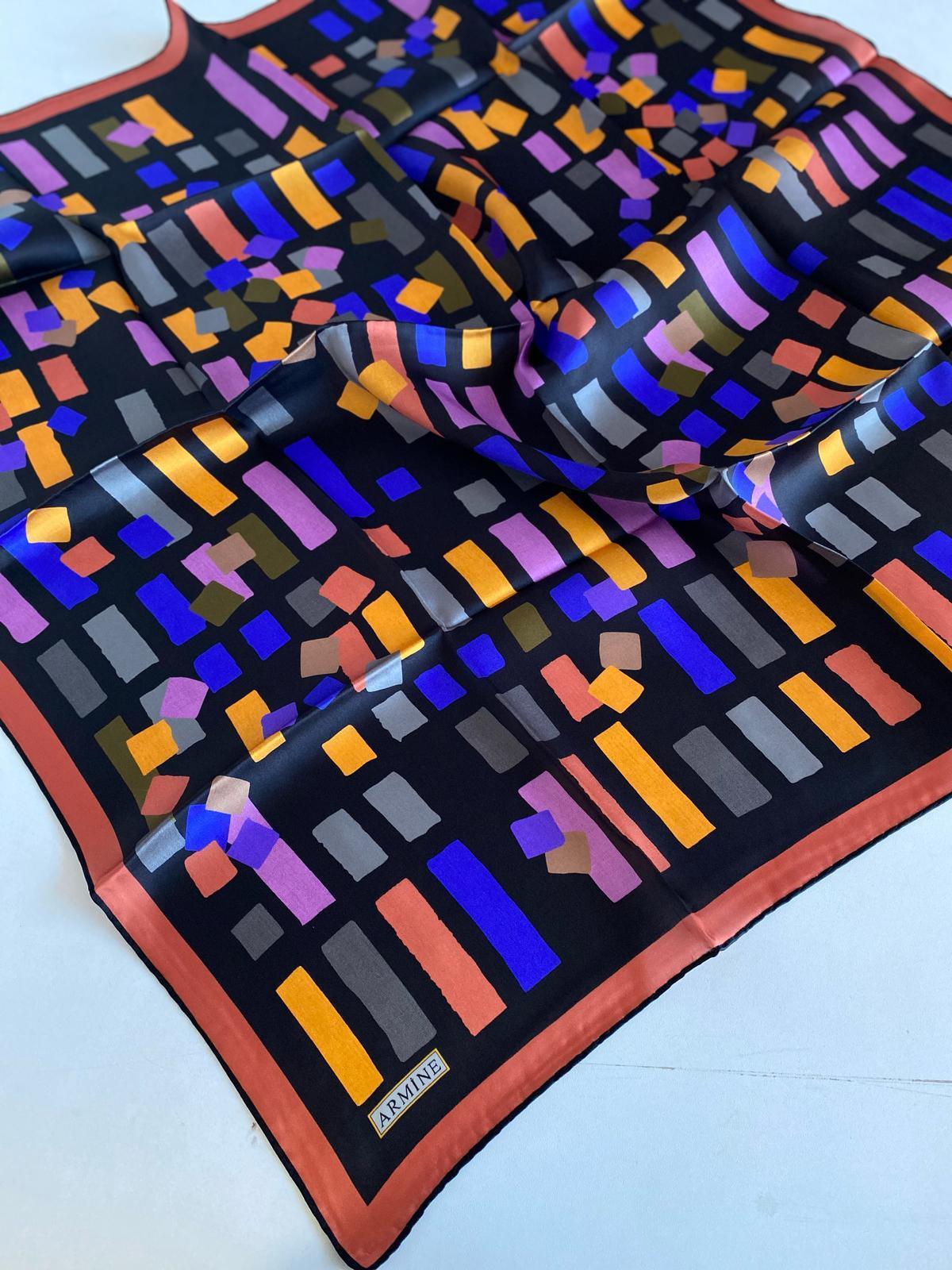 Armine Tivil İpek Eşarp 9341 – 57 Siyah Karışık Desen