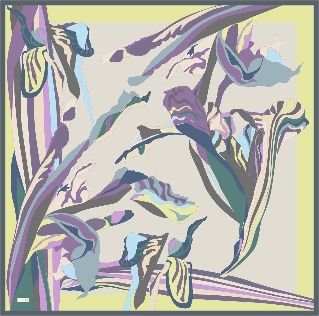 Belli Tivil İpek Eşarp 4017 – 85 Mavi Karışık Desen