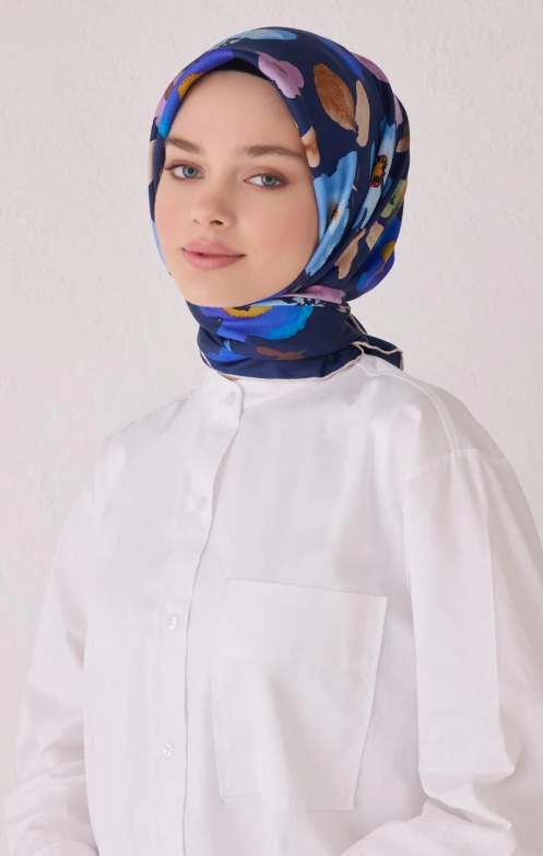Belli Tivil İpek Eşarp 4033 – 36 Lacivert Karışık Desen