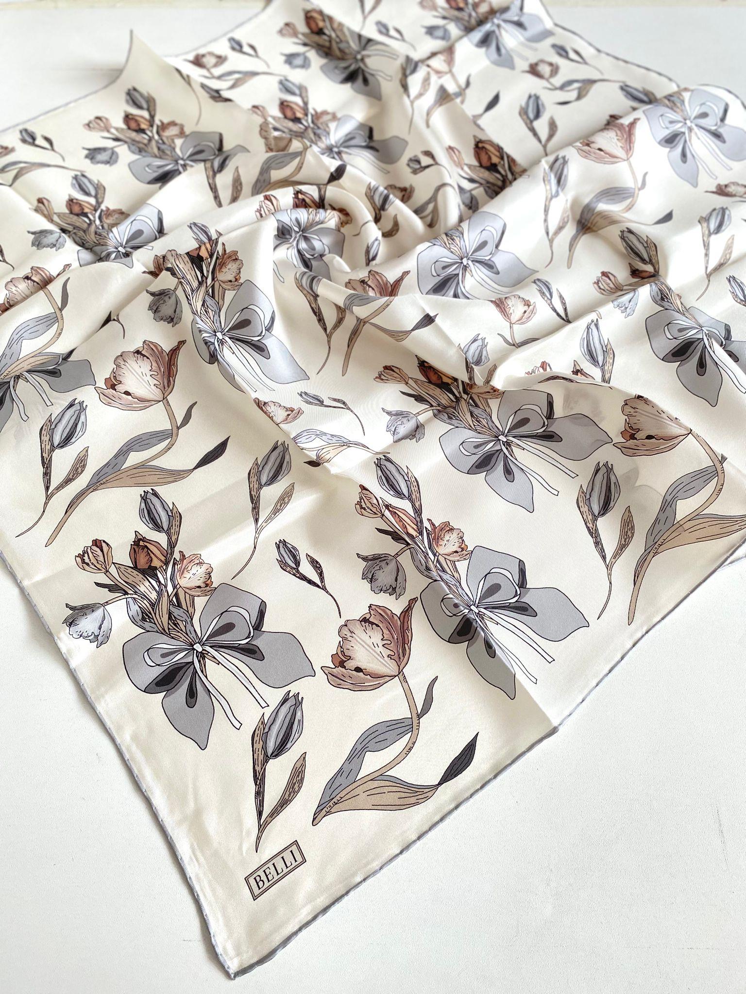 Belli Tivil İpek Eşarp 4037 – 85 Beyaz Karışık Desen