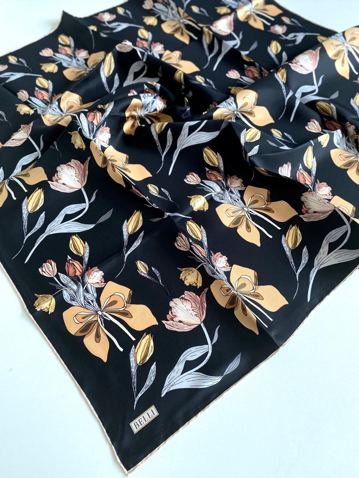 Belli Tivil İpek Eşarp 4037 – 86 Siyah Karışık Desen