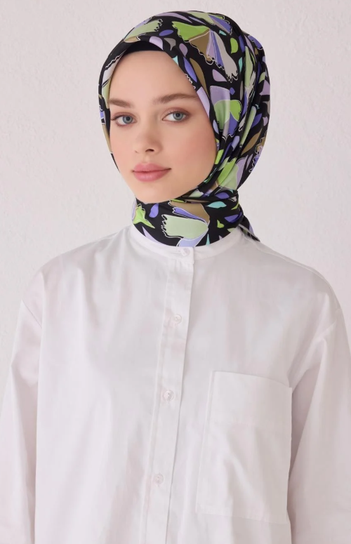 Lawilia Siyah Yeşil Halka Desen Tivil İpek Eşarp 29020 – 33