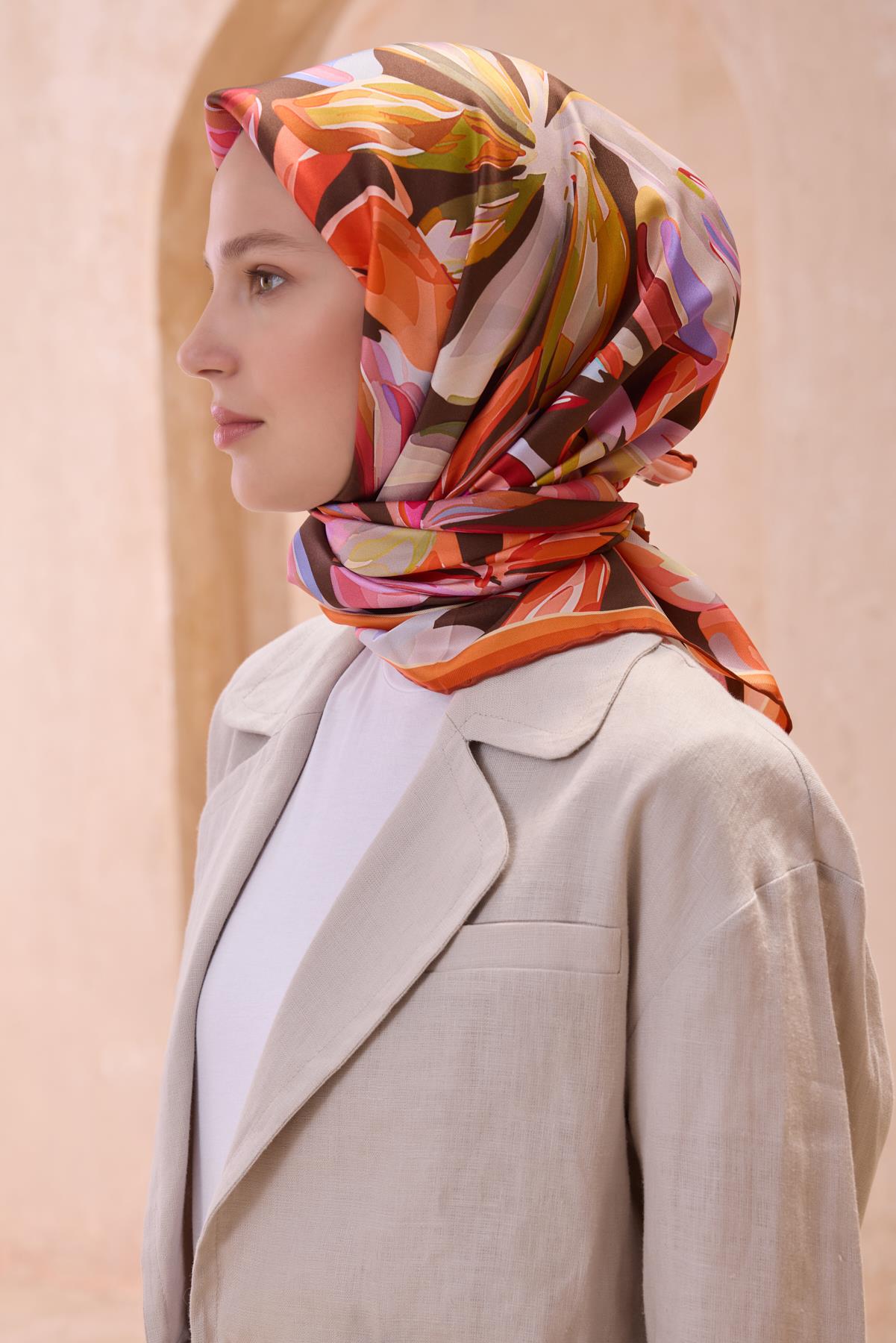 Belli Tivil İpek Eşarp 4107 – 35 Turuncu Karışık Desen