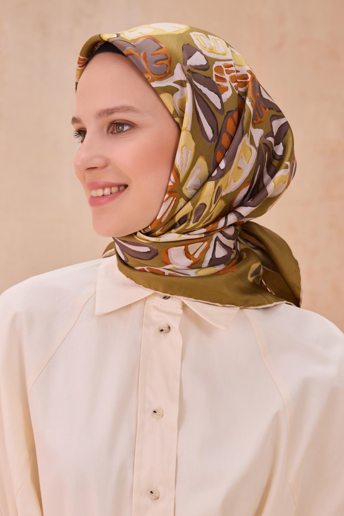 Belli Tivil İpek Eşarp 4114 – 36 Yeşil Karışık Desen