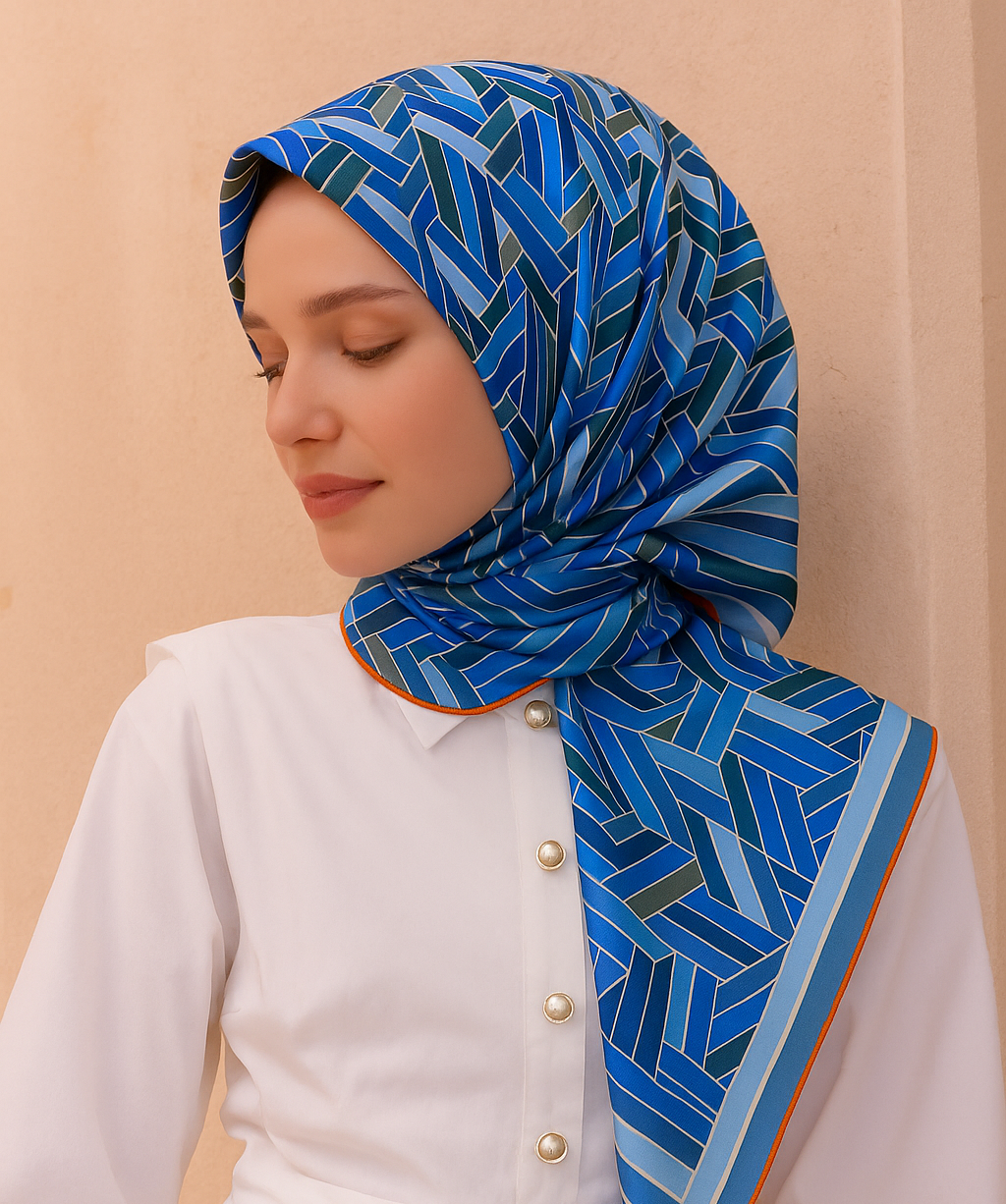 Belli Tivil İpek Eşarp 4119 – 33 Mavi Karışık Desen